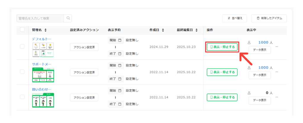 リッチメニューの表示・停止が、リッチメニューの管理画面から直接行えるようになります。