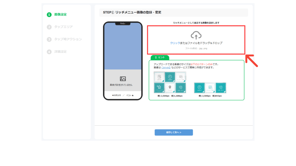 リッチメニュー画像をドラッグ&ドロップで登録が出来るようになります。