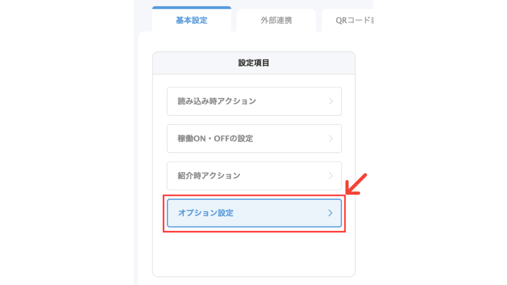 左側の「基本設定」の設定項目から「オプション設定」をクリックします。