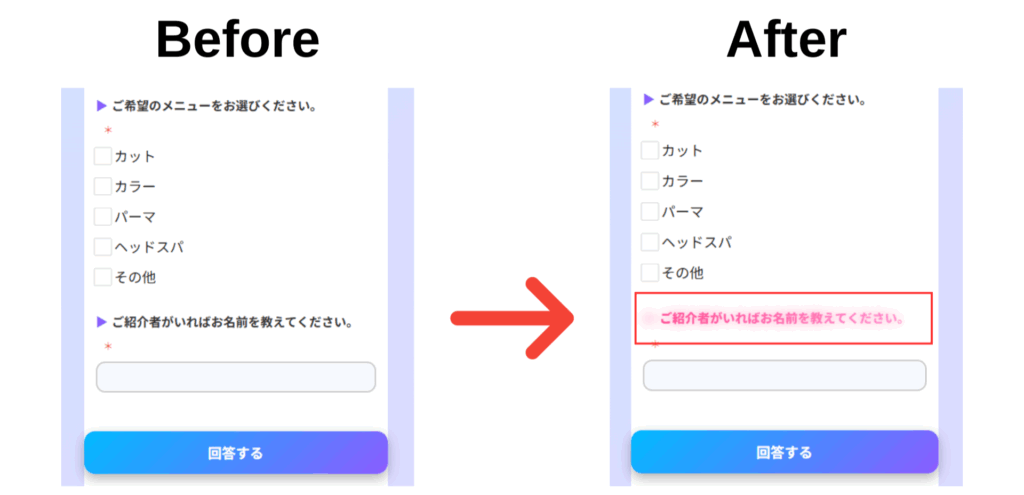これで、特定の質問項目のみ特別なデザインを適用できます。