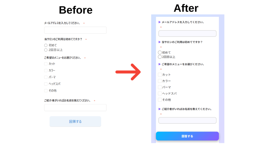 設定を反映すると、以下のようにフォームの見た目が変わります。