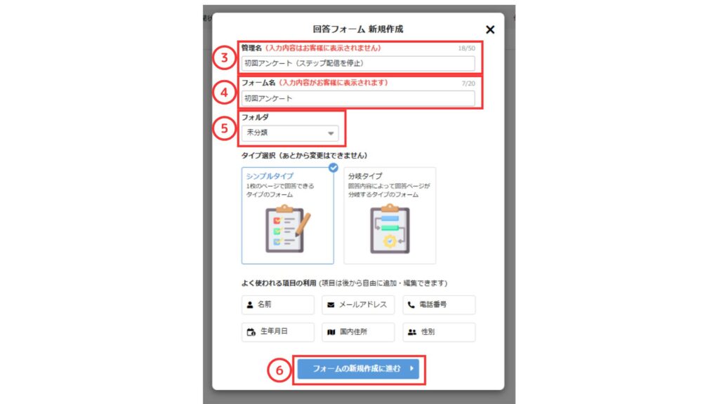 ④友だちに対して分かりやすい「フォーム名」を入力