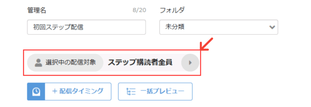 画面上部の「選択中の配信対象」から、ステップ配信でメッセージを送信する友だちの対象を設定する事が可能です。