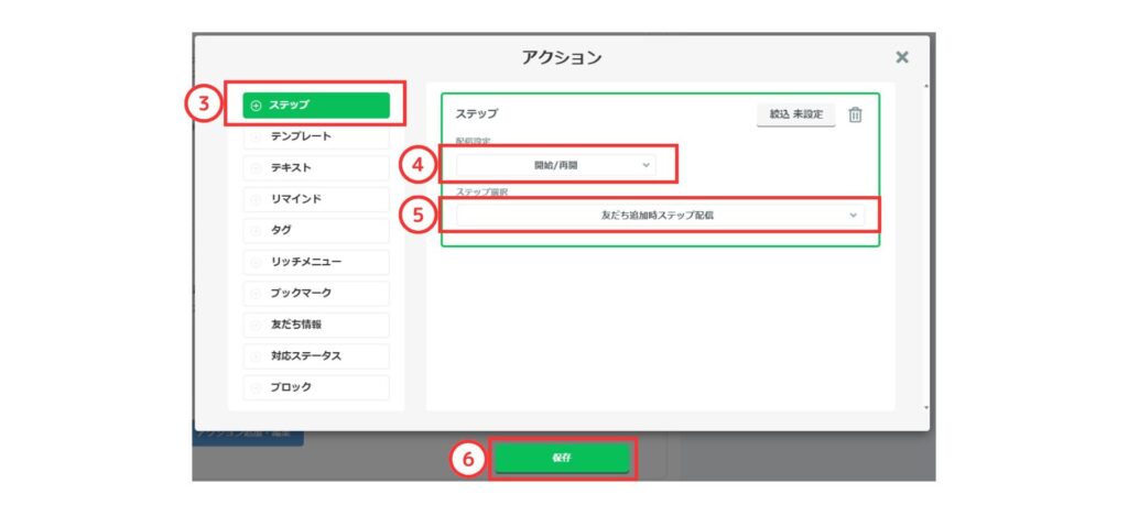 ⑤ステップ選択から指定の「ステップ配信」を選択