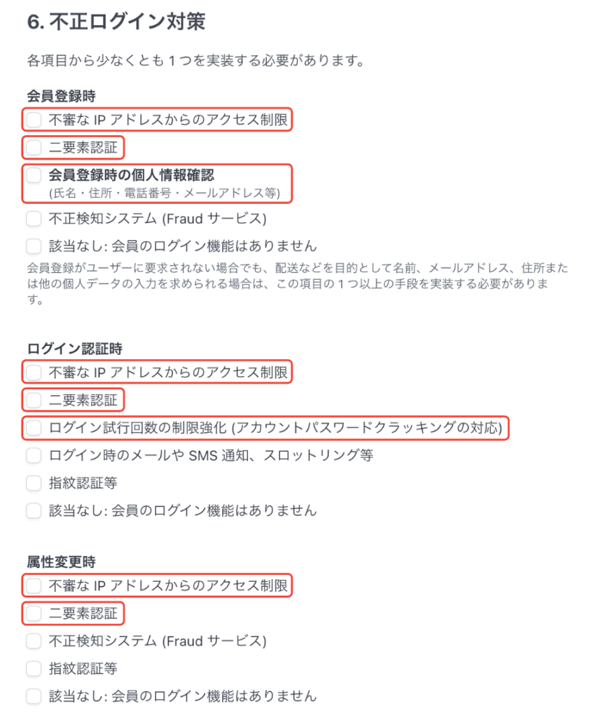 悪性な有効性確認、クレジットマスターに対して、セキュリティ・チェックリストに記載の対策を1つ以上実施している。