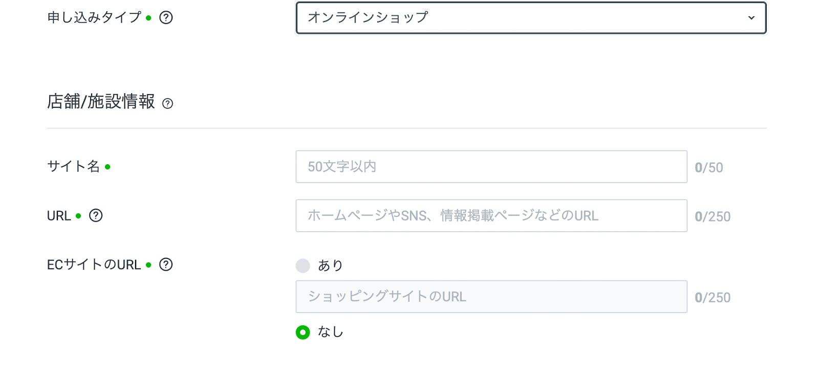 • 注意点: 店舗タイプと違い住所入力は不要ですが、ショップのURL提示が必須です。