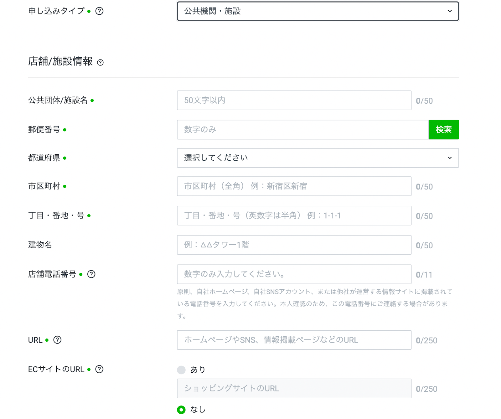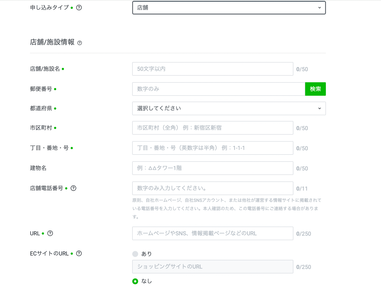• 入力項目: 店舗名、住所、電話番号、URL、ECサイトの有無。
