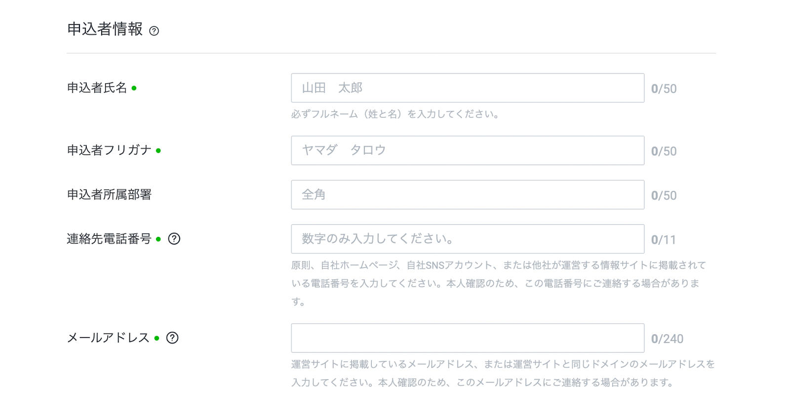 • 氏名: 必ず担当者の個人名をフルネームで入力してください。