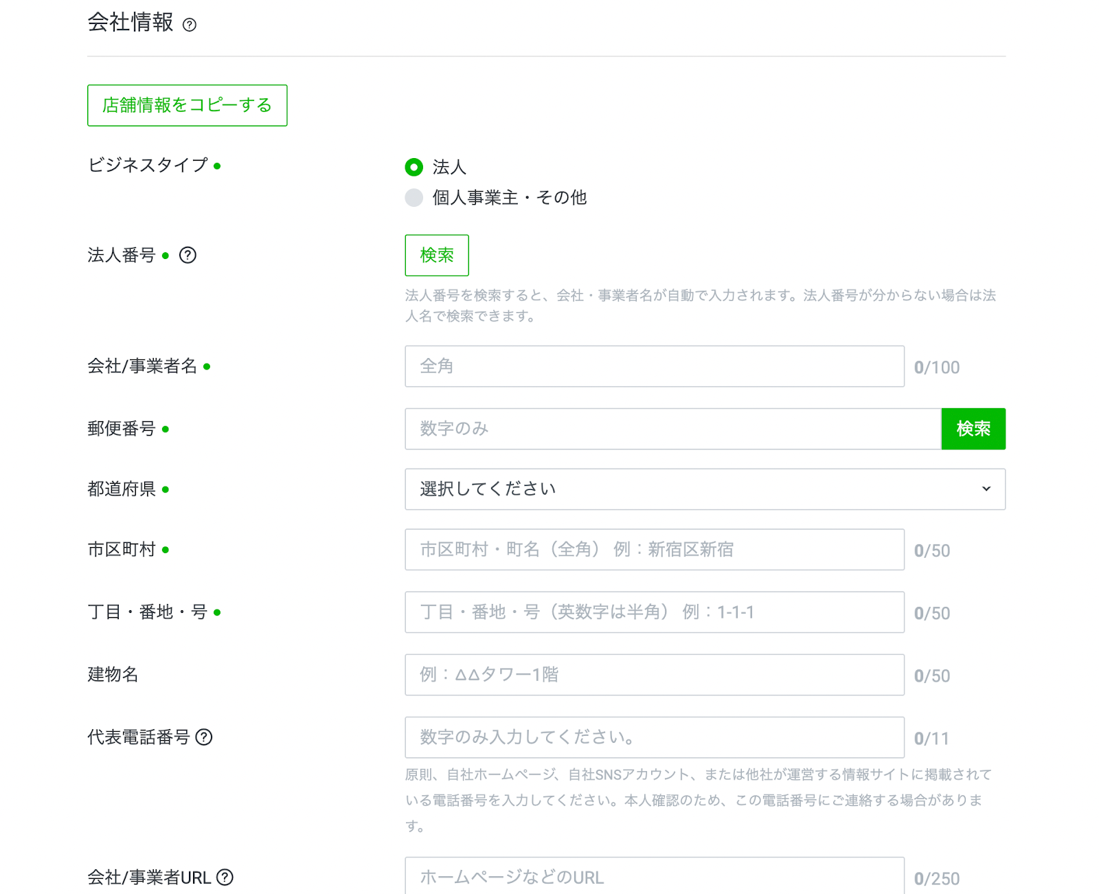 • 法人番号: 法人の場合は入力が必要です。