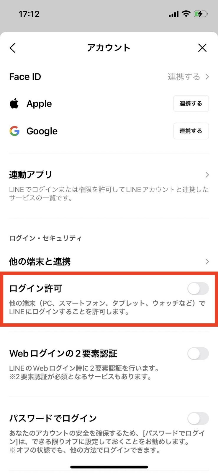 ただし、ログイン許可をオンにすると、第三者が別の端末から不正にログインを試みるリスクも生じます常に外部からのアクセスを受け付ける状態になるため、身に覚えのないログイン通知に注意を払う、あるいは2段階認証を活用して本人以外のアクセスを防ぐといった対策を併せて検討しましょう。