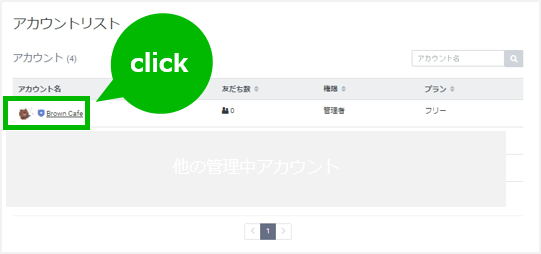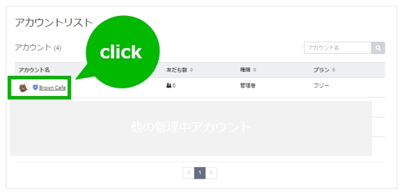 1. 表示されたアカウントリストから、対象のアカウント名をクリックする