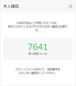 1. 初めてのブラウザの場合は、画面に表示された認証番号を3分以内にスマホ版LINEアプリに入力する