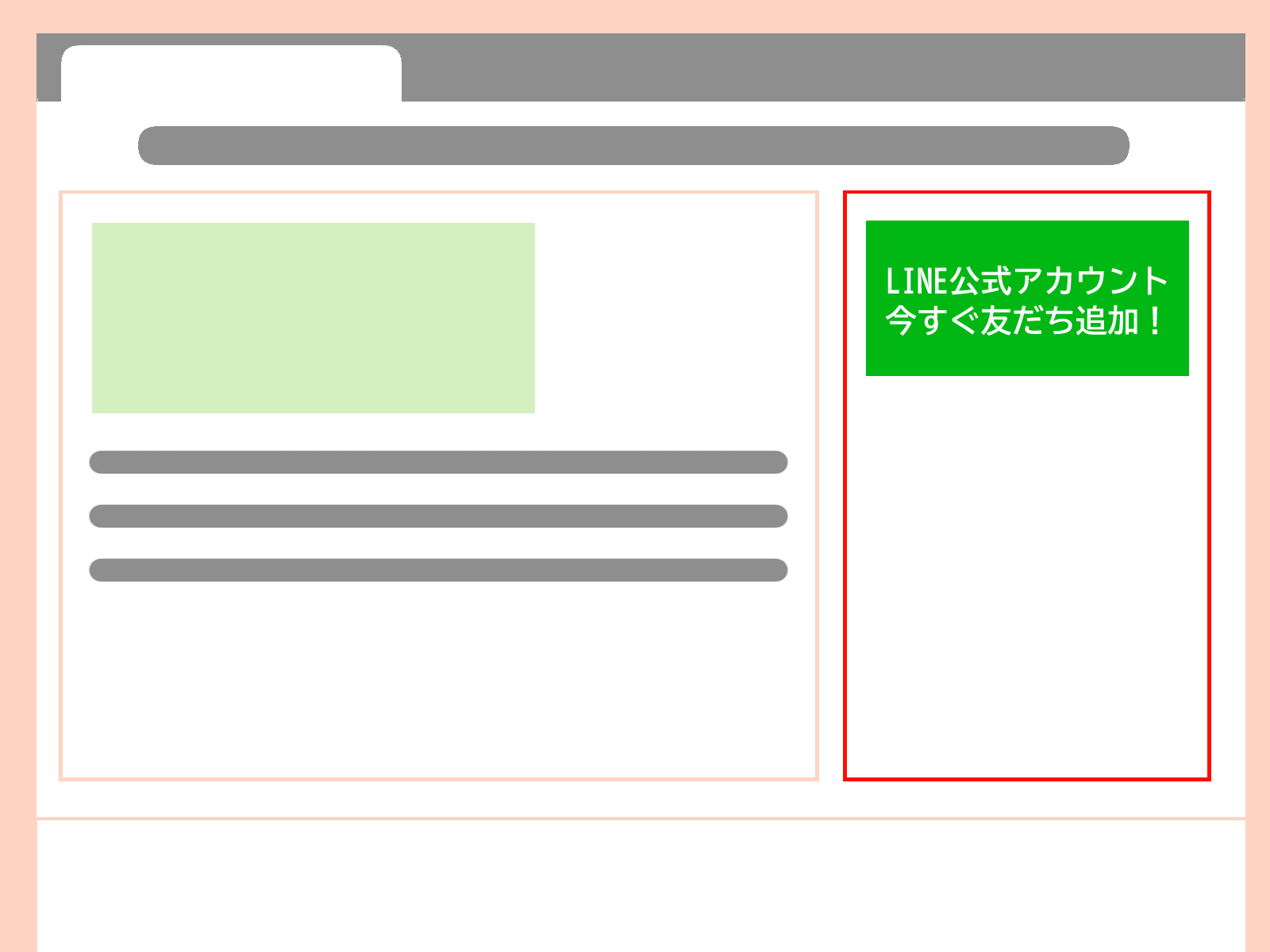 サイドバーへの設置は、どのページを閲覧していても常に友だち追加ボタンが表示されるため、非常に効果的な設置場所です。とくに「追従表示」にすることで、ユーザーがページをスクロールしても常に表示され続けるため、登録機会を逃しません。