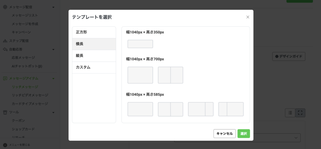 リッチメッセージで使用する画像は、あらかじめ決められたサイズやレイアウトに合わせて作成しましょう。