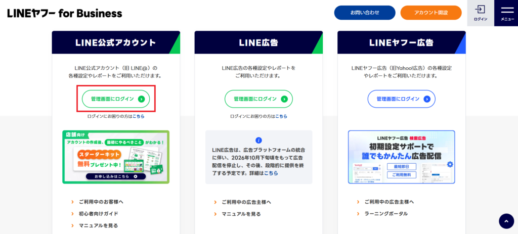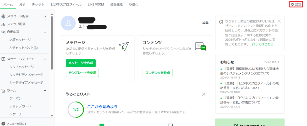 ①LINE公式アカウント管理画面にログイン