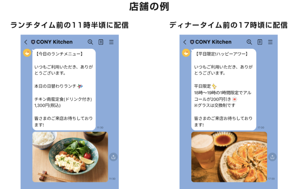 画像を使った配信がとくに効果を発揮するのが、新商品の紹介やキャンペーン告知、クーポン配布など、視覚的な訴求が重要な場面です。