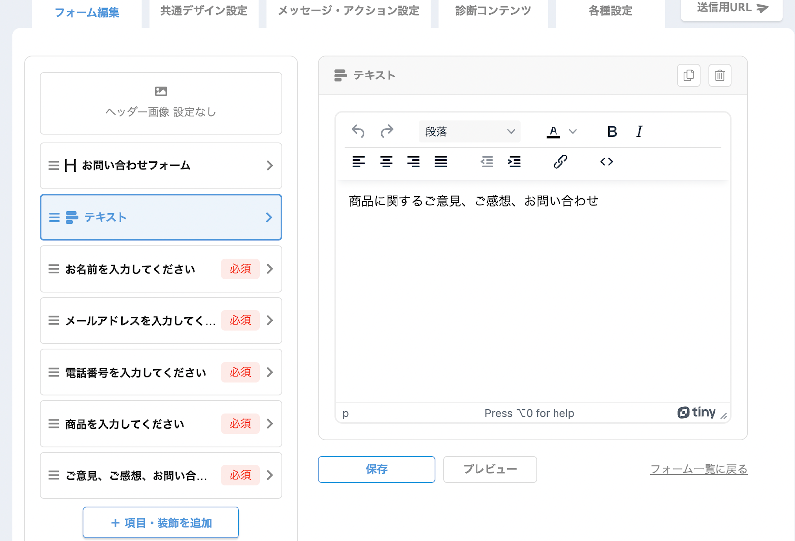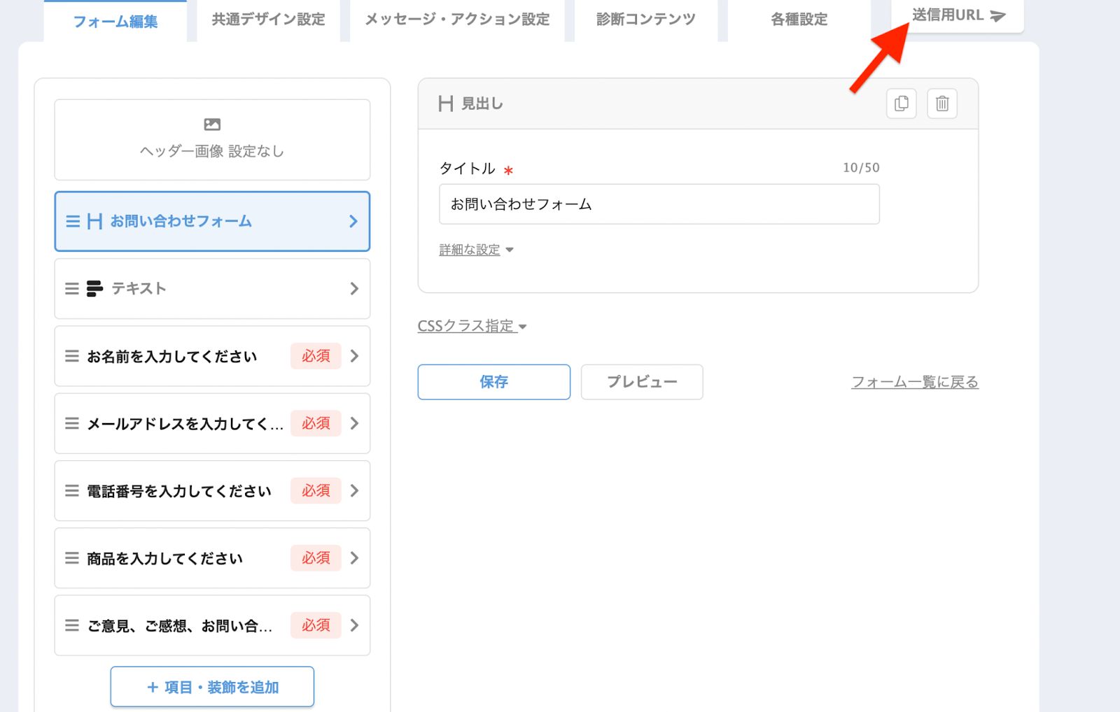エルメのフォーム作成機能を使って問い合わせフォームを作成していきます。