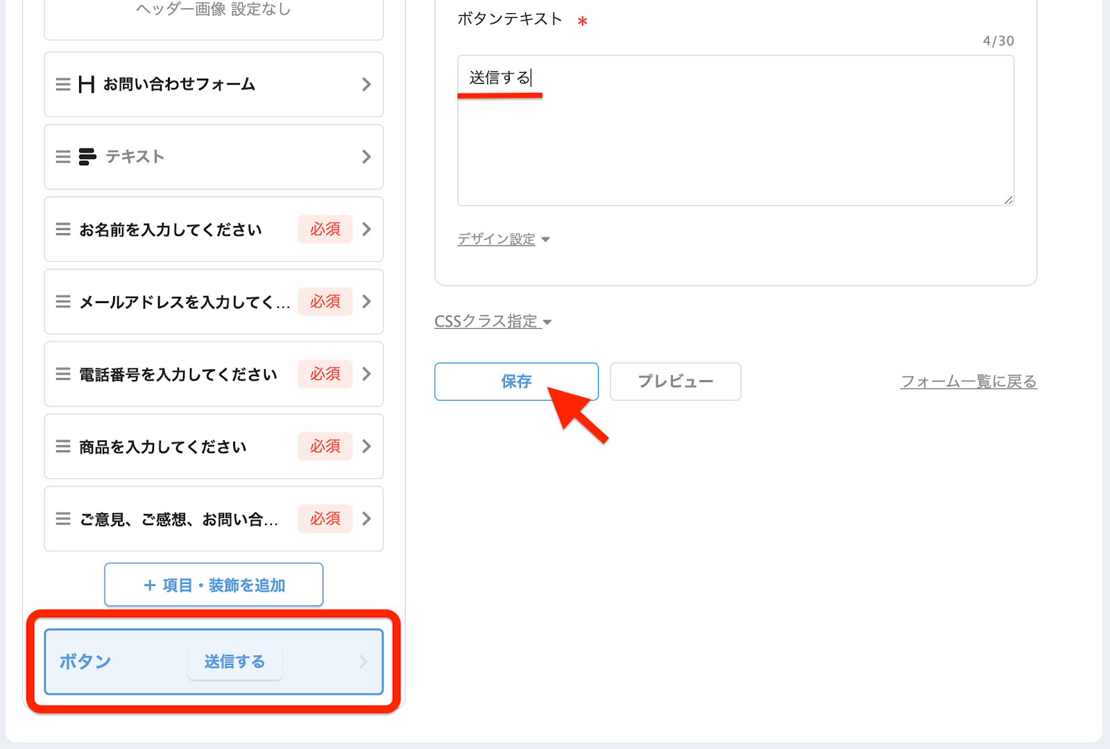 作成が完了したら、回答完了ボタンのボタンテキストを「送信する」などに設定し、「保存」をクリックしましょう。