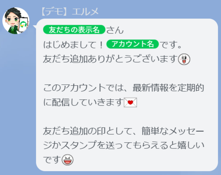 あいさつメッセージとは、ユーザーがLINE公式アカウントを友だち追加した直後に、自動で配信されるメッセージのことです。