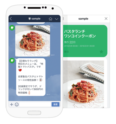 ・LINEアプリ内にアカウント情報やクーポンを掲載できる