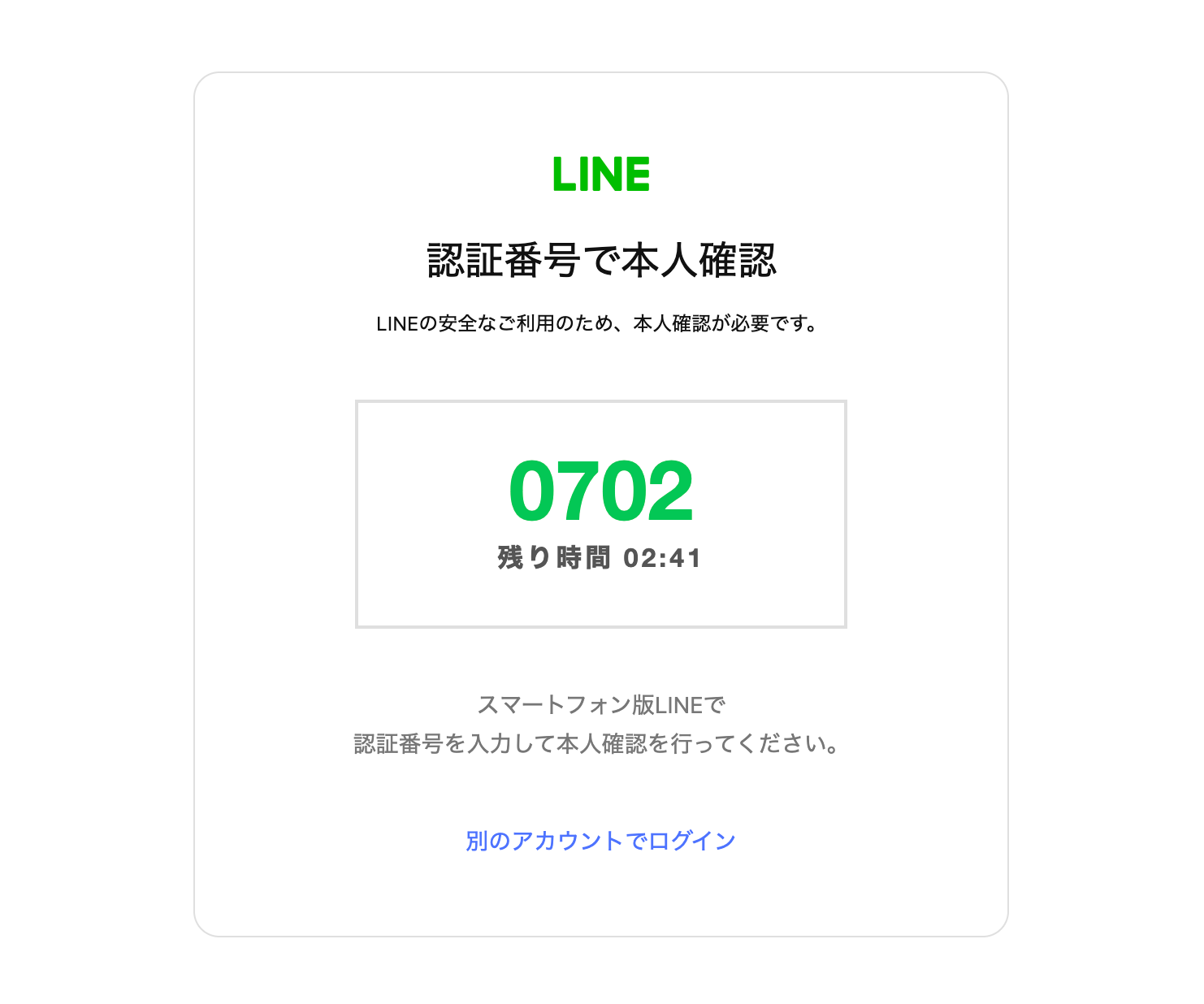 「4桁の認証番号」を、お使いのスマホのLINEアプリに表示される画面に入力することで、本人確認が完了します。