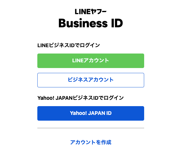 1. ログイン画面で「ビジネスアカウント」を選択する