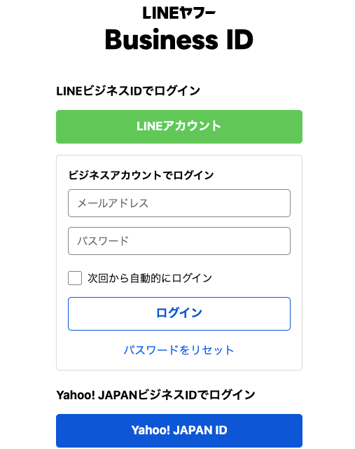 パスワードリセットの案内は、あらかじめ「LINE Business ID」に登録してあるメールアドレス宛に送信されます。