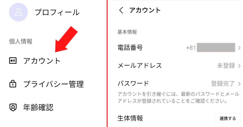 LINEアプリの登録情報を確認する(LINEアカウント連携時)