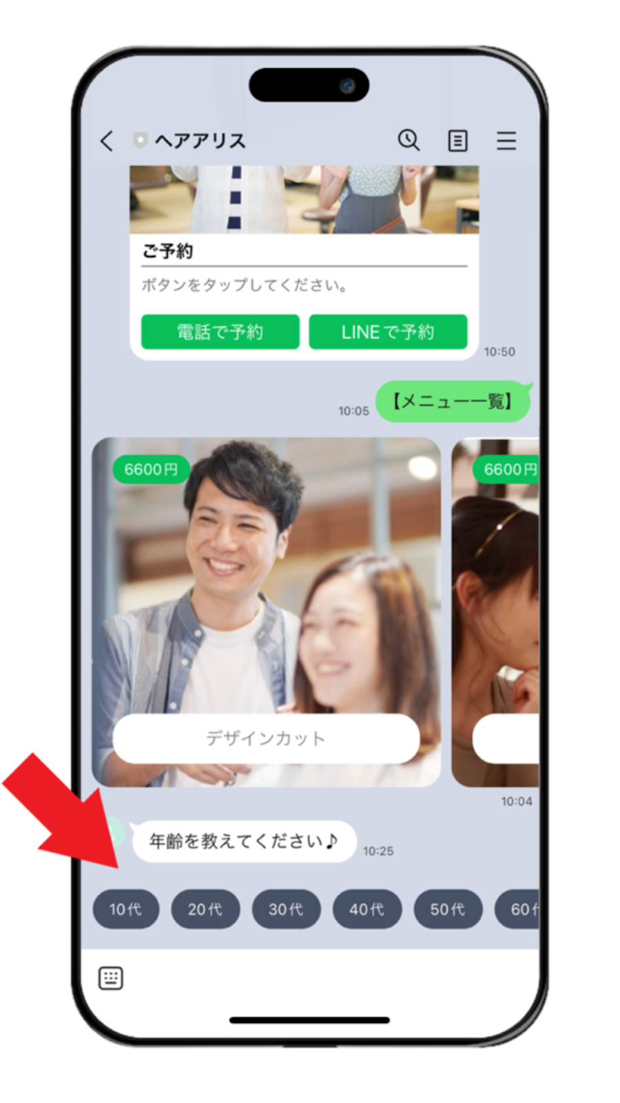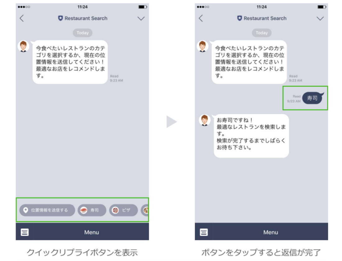 ユーザーはテキストを入力する必要がなく、表示された選択肢をタップするだけで返信できます。
