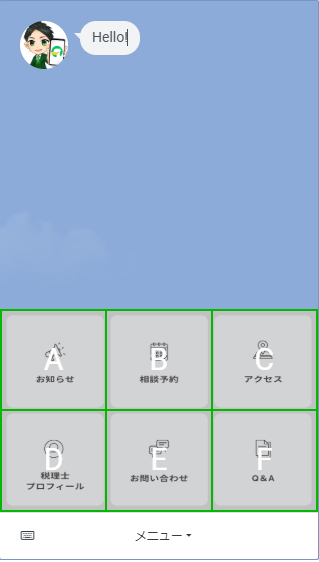 メッセージとは異なりますが、こちらのメニューにも任意の画像を設定することが可能です。常に表示しておきたい、友だちがアクセスできるようにしておきたい機能などは、メッセージよりもリッチメニューに固定して表示する方が便利です。