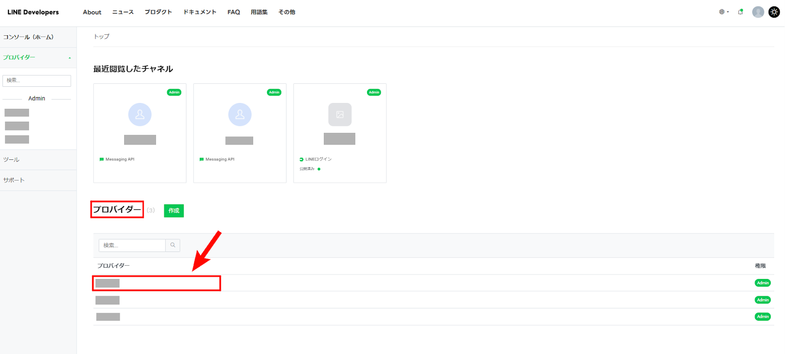 「プロバイダー」の中にあるアカウントを選ぶと、先ほど作成したチャネルが表示されます。